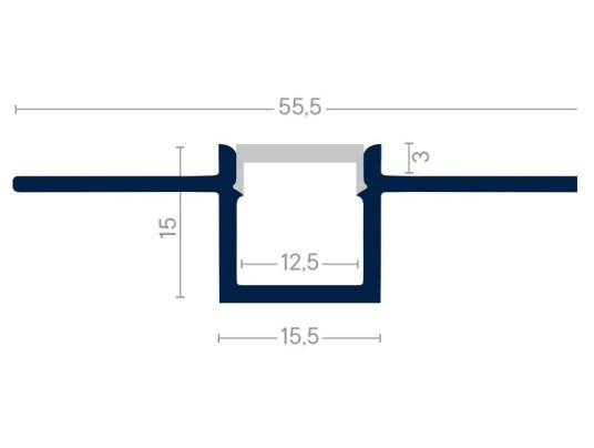 Profilé en aluminium à encastrer. Diffusion lumineuse uniforme grâce au diffuseur opale et une profondeur optimale. -