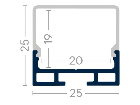 Profilé led avec ses accessoires (embouts) de section carrée 25mm x 25mm. Diffuseur opale avec une diffusion sur 3 faces. -