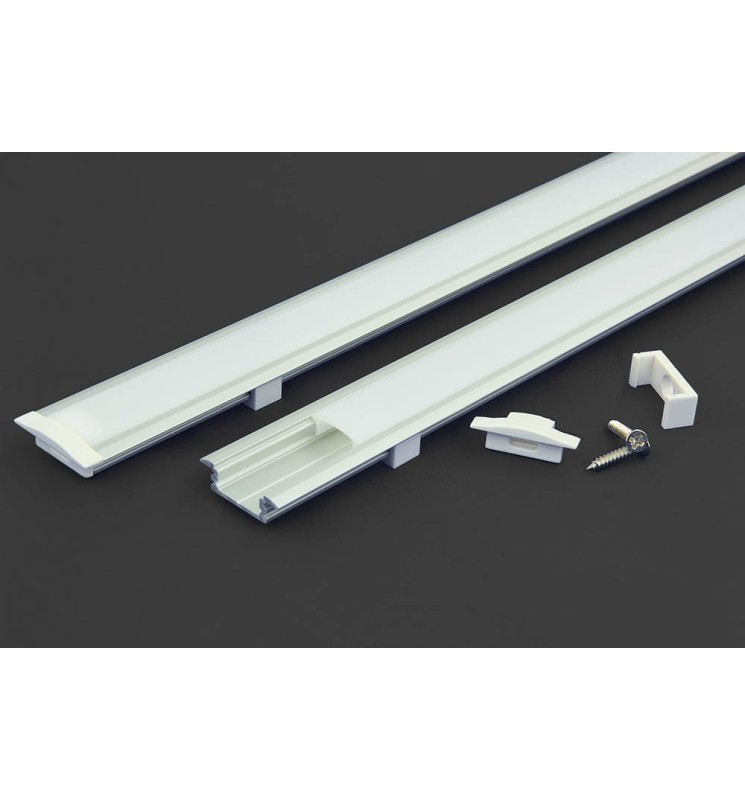 Profilé aluminium avec diffuseur opale en 2m. Embouts de finition et clips de montage inclus.