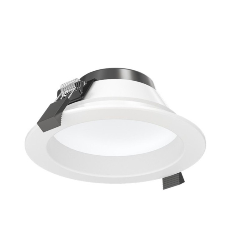 Downlight LED avec diffuseur prismatique anti éblouissement et retrait, CCT interchangeable 3000/4000/6000K, IP44 façade et 850° conforme ERP et IGH !