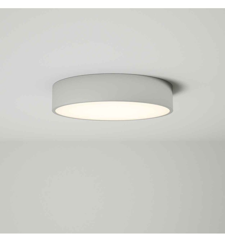 Plafonnier ou applique murale IP44, bord fin, diffuseur lisse. Design sobre et élégant, idéal en salle de bain ou pièce de vie en éclairage décoratif.